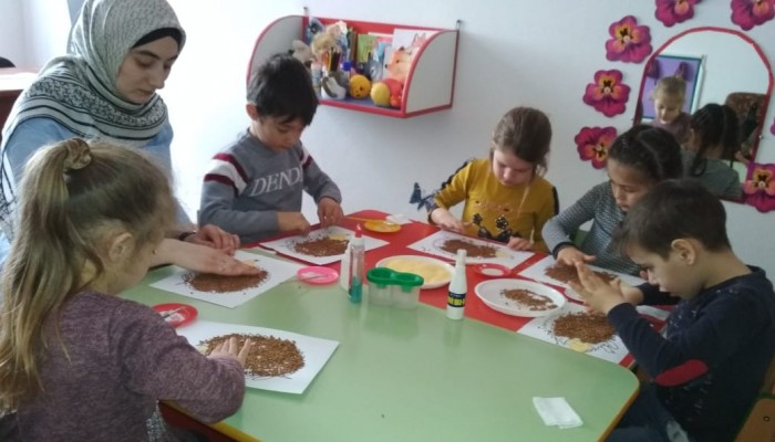 Аппликация крупой. Развитие мелкой моторики рук.